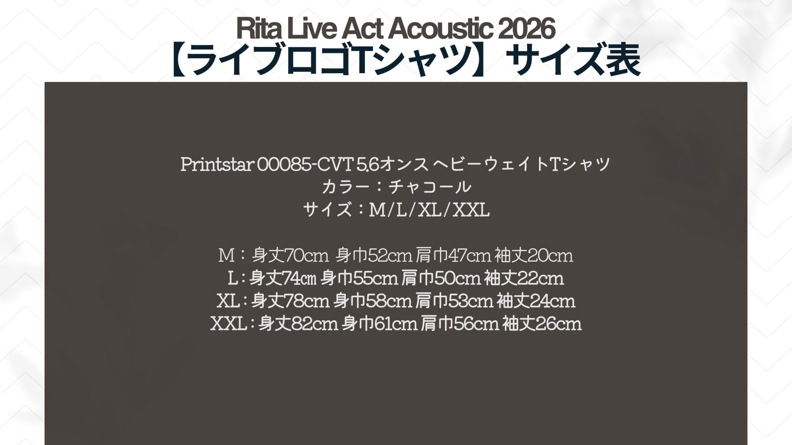 【Rita Live Act Acoustic 2026】ライブロゴTシャツ(M/L/XL)【再販・受注・送料込】